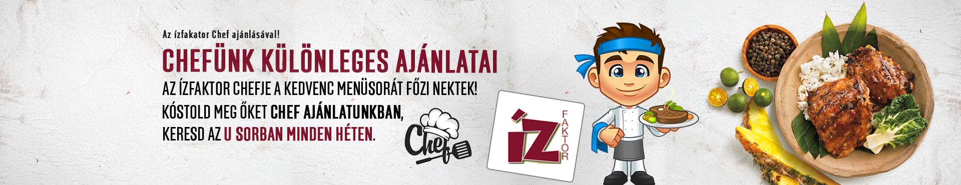 Az Ízfaktor séfje minden héten a specialításaiból állítja ezt a kínálatunkat étlapunkra.